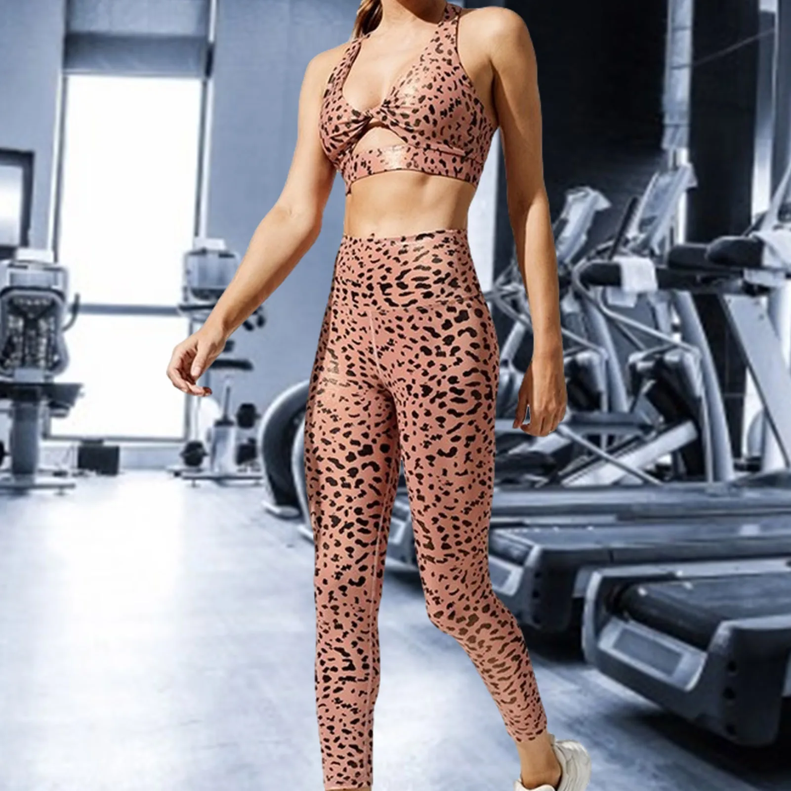 Ladies Workout Outfit Women’s Yoga Outfits 2 Piece Set High Waisted Leggings With Front Slim Fitness Set