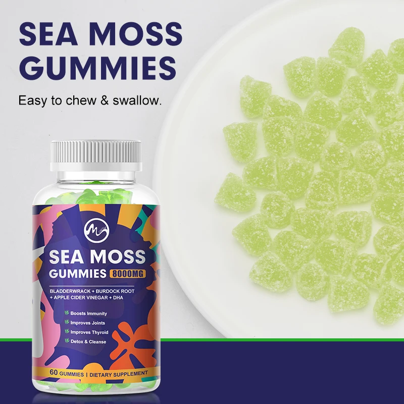 Sea Moss Gummies – 60 Gummies – Made with Bladderwrack & Burdock Root – Seamoss Supplement for Thyroid, Energy, Immune Support